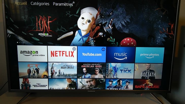 Fire OS étant un dérivé d'Android TV, on a accès à une bonne partie des applications Android TV comme Netflix, YouTube entre autres ( plus de 4000 ) mais aussi les applications Amazon comme Prime video dans une résolution maximum de 1080p ( full HD) .