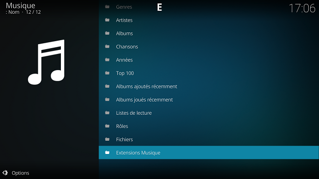 L'extension Radio est maintenant installée. Il suffit de retourner au menu principale, de cliquer sur extensions, puis sur extensions musique pour accéder à des milliers de radios.