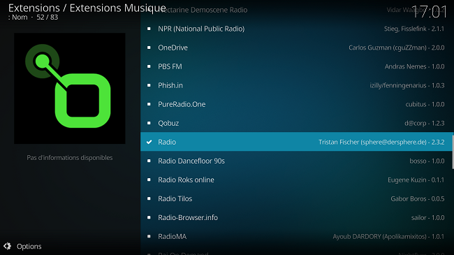 L'extension ou addon "Radio" pour Kodi permet de créer d'écouter plus de 7000 stations de radio avec un classement par genre, pays, ville, langue depuis son mediacenter ...
