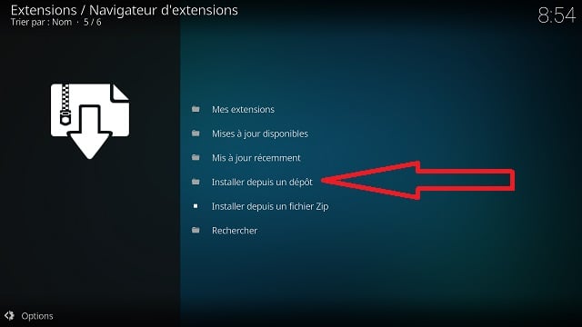 Dans Kodi, il faut cliquer sur extensions, puis sur le petit paquet ouvert en haut à gauche.