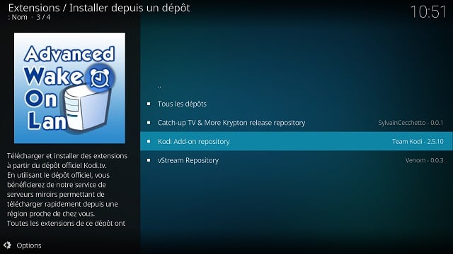 5_ Cliquez sur "Kodi addon repository" (s'il n'y est pas, cliquez directement sur "extensions musique)